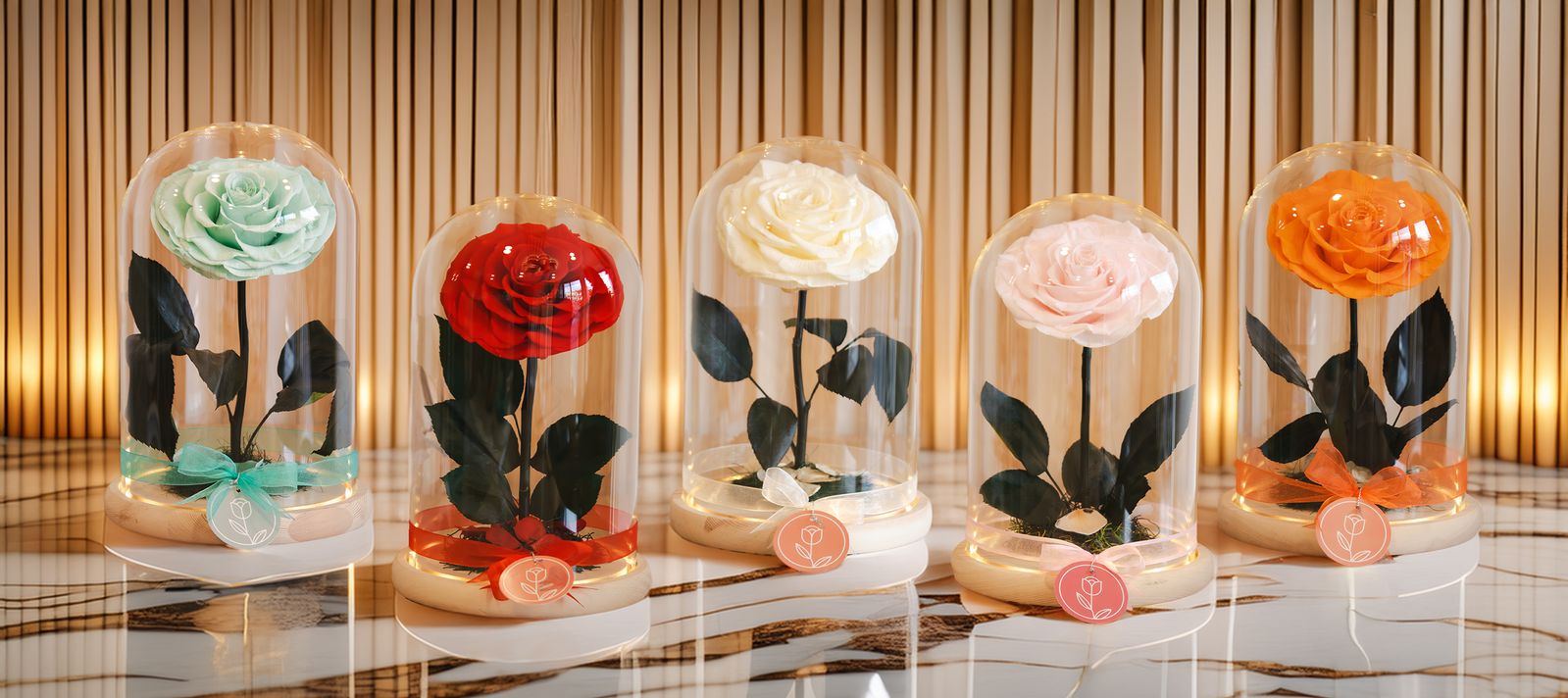 Explore our curated collections of preserved florals—crafted with real Ecuadorian roses and sunflowers, artfully treated to maintain their natural look for years. From classic domes to vibrant one-of-a-kinds, these blooms are designed to make beauty last.