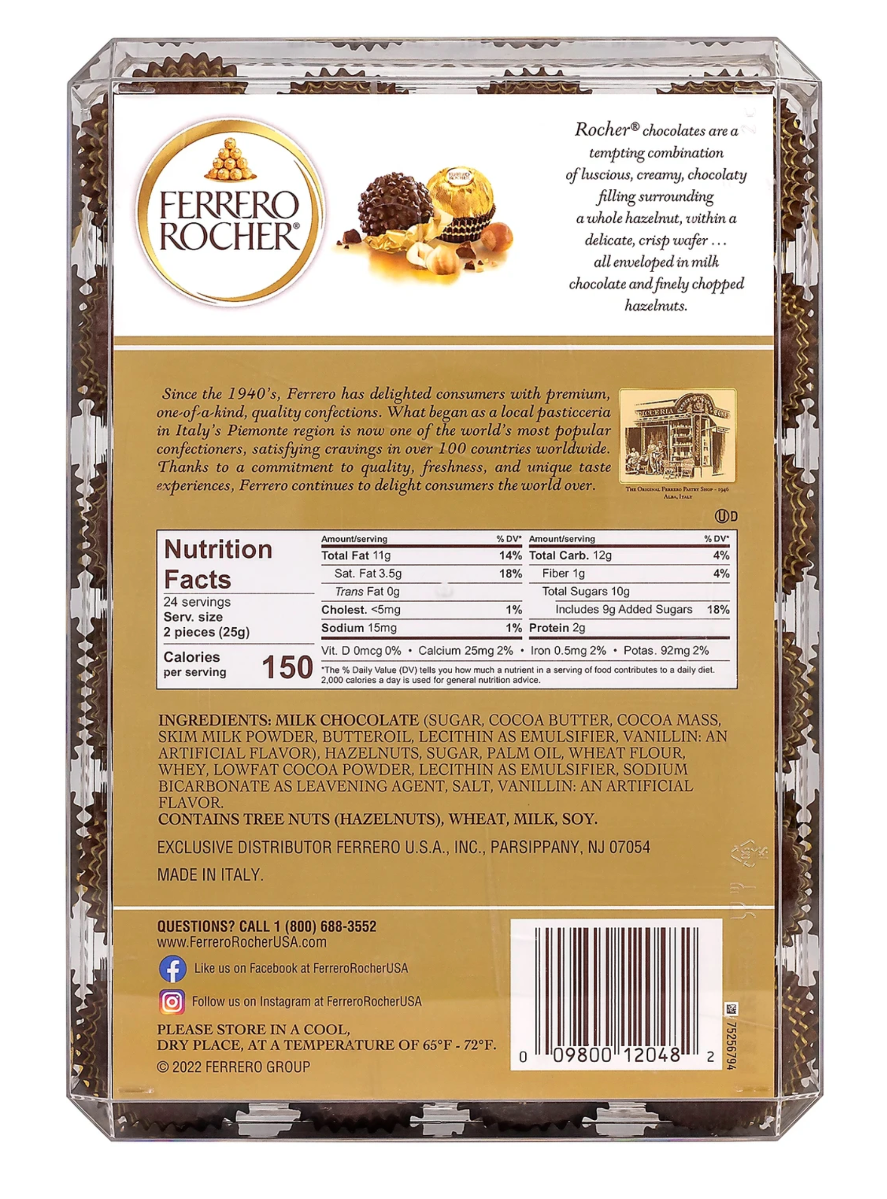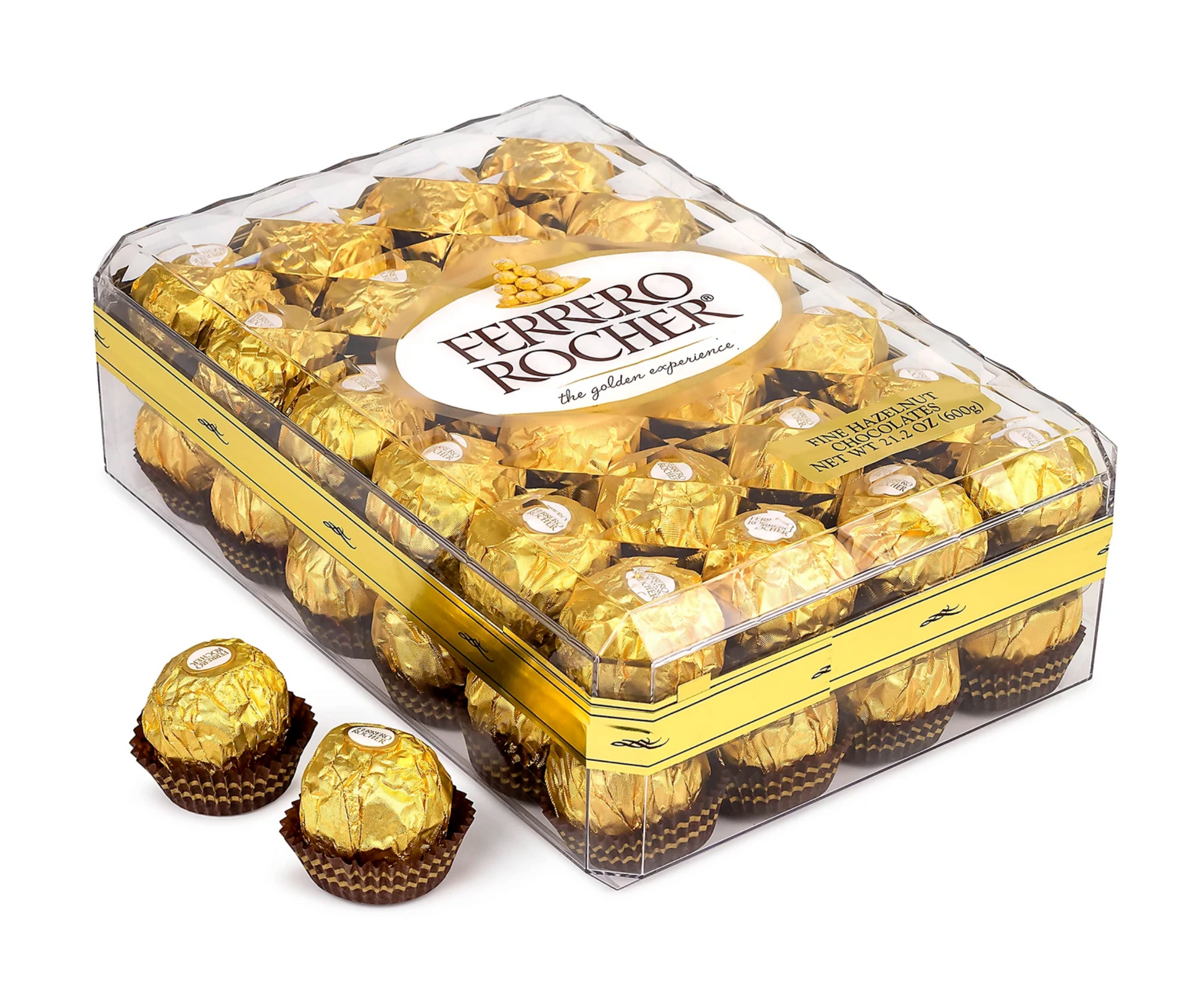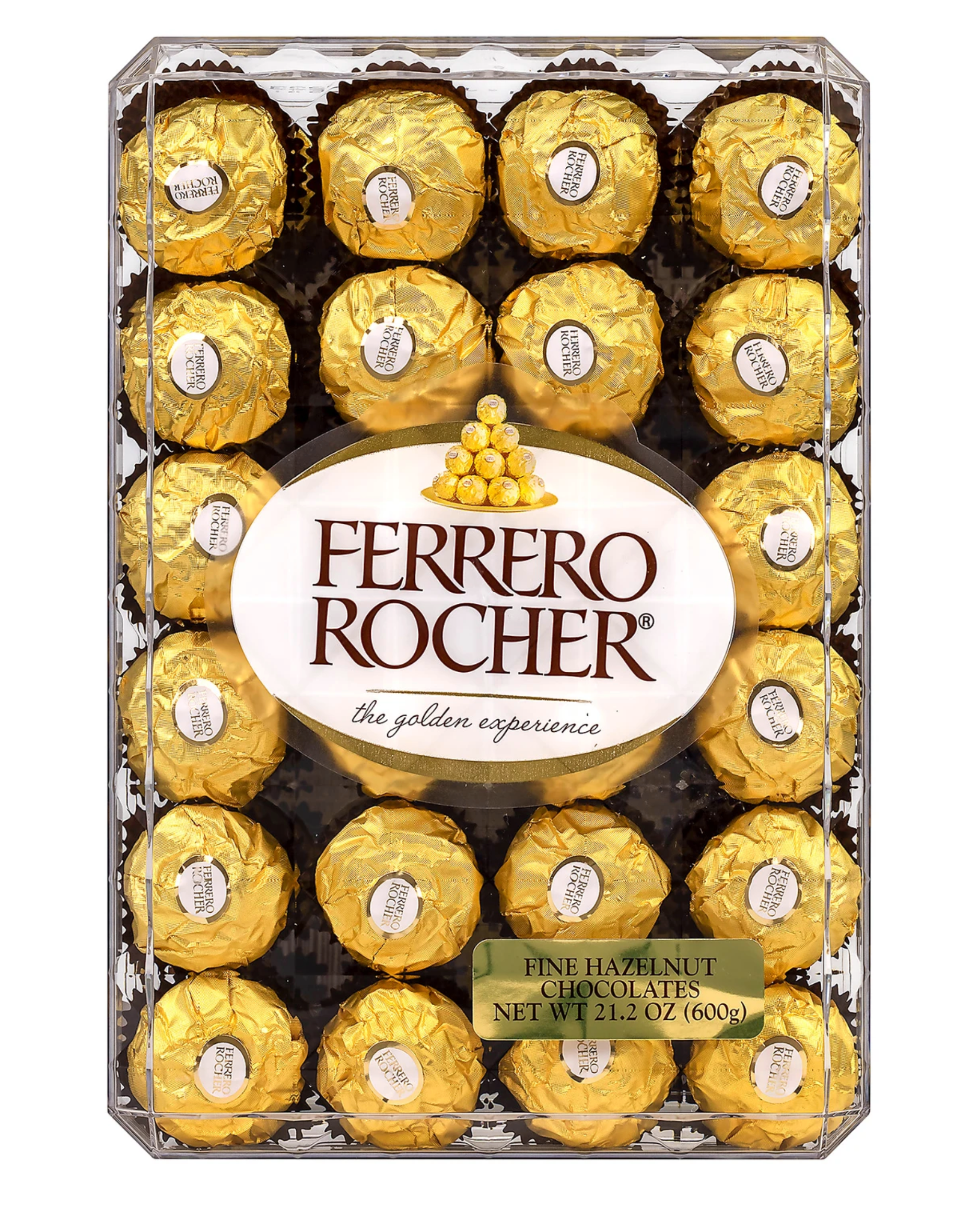A decadent complement to your floral gift—our Ferrero Rocher chocolates add just the right touch of indulgence. Wrapped in gold and filled with layers of hazelnut, chocolate, and crisp wafer, this timeless treat is the perfect way to elevate any celebration.