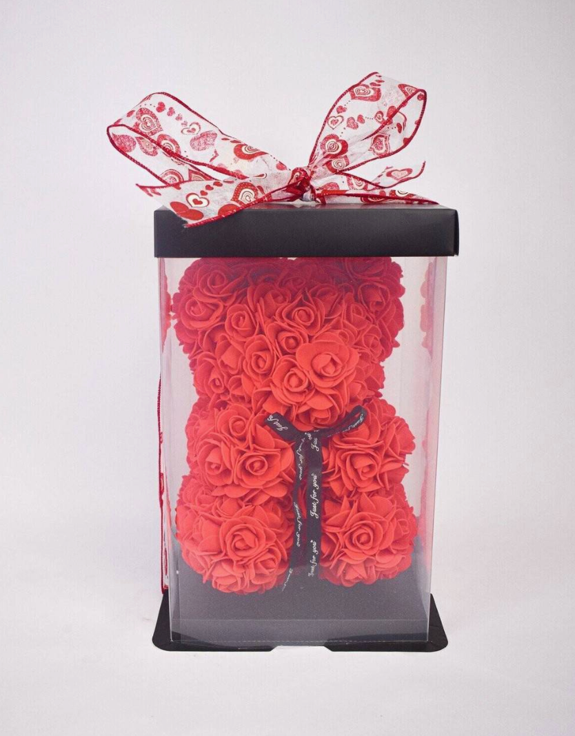 This adorable teddy bear is handcrafted from hundreds of delicate faux roses and presented in a clear gift box—ready to wow! Whether as a romantic gesture, a sweet surprise, or a decorative keepsake, the Rose Teddy Bear is a lasting symbol of love.