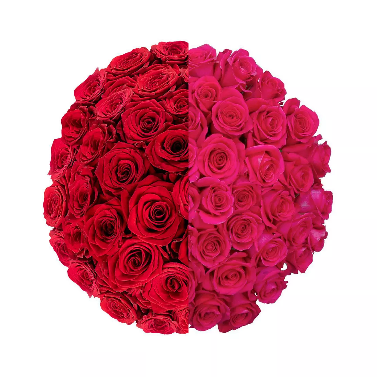 This standout bouquet brings together two complementary rose colors in a single, lush arrangement—designed to express layered emotion and bold elegance. Hand-tied with intention, each bouquet creates a visual story through color, craftsmanship, and care.