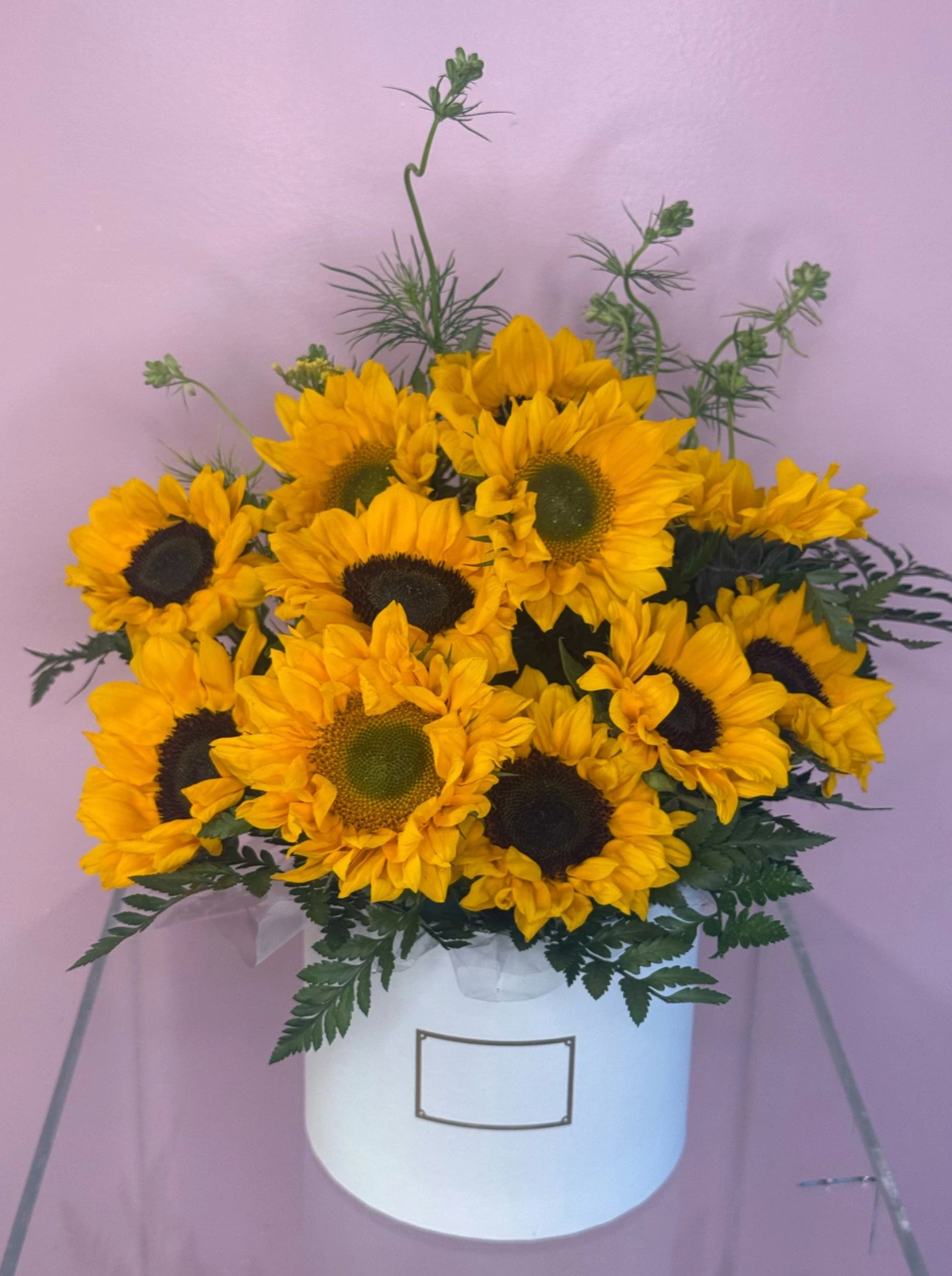 Each sunflower is carefully selected for its fullness and golden hue, creating a bold, joyful statement that lasts. The elegant box adds a modern touch, making this the perfect gift or centerpiece.